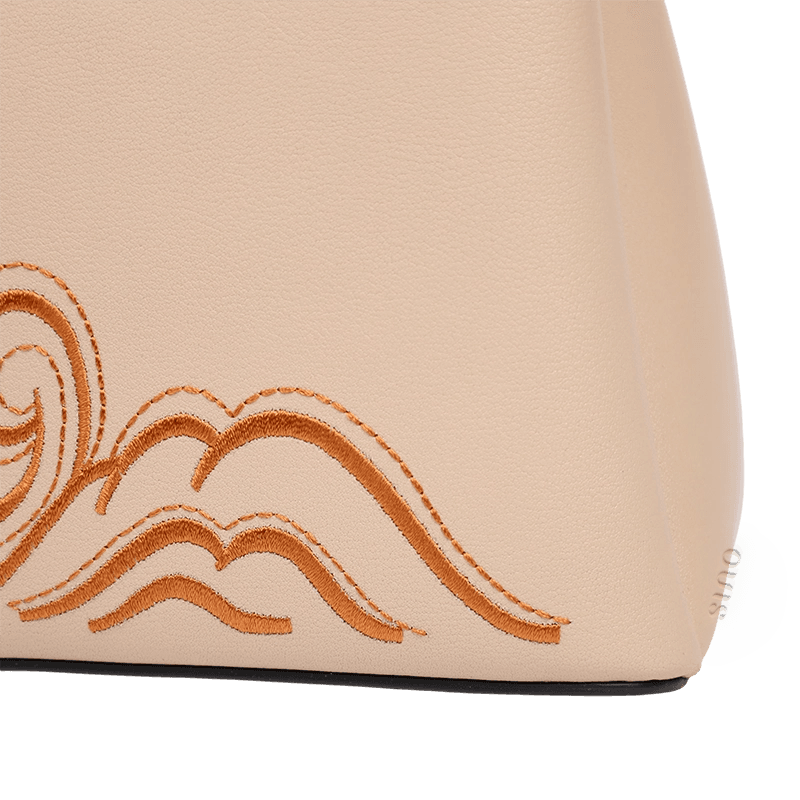 それぞれのハンドバッグは、30年以上の経験を持つ熟練職人によって刺繍されている。熟練の手さばきと伝統技法への深い理解によって、彼らは東洋の伝統と自然のエレガンスにインスパイアされたモチーフに命を吹き込む。糸は正確さと魂を込めてレザーの上を滑り、他では再現できないテクスチャーを形成する。ひとつひとつが、時間と技術と静かな贅沢が注ぎ込まれた、唯一無二の芸術品なのです。