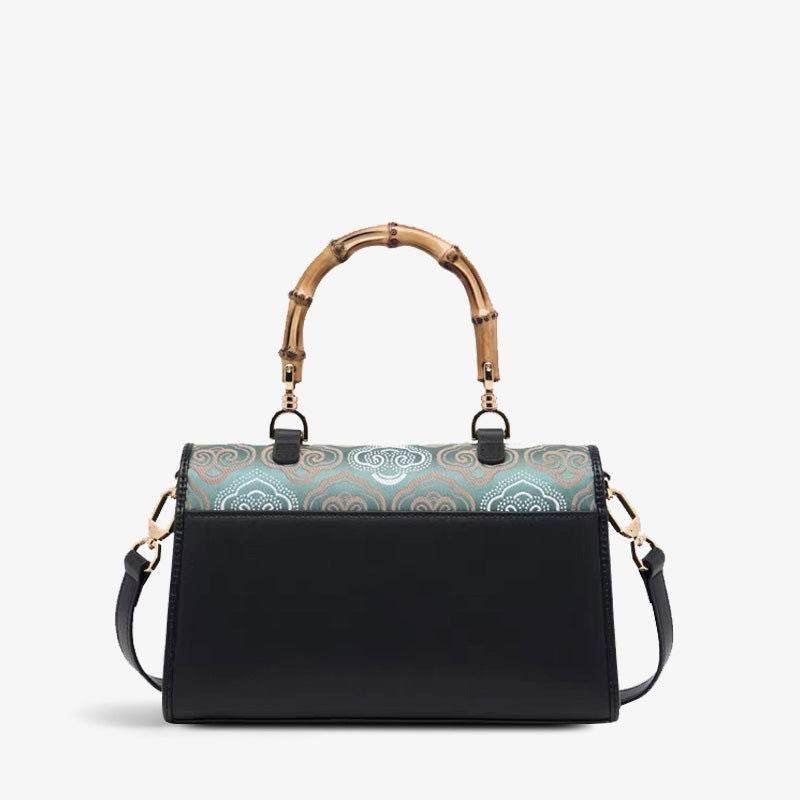 刺繍レザーバッグ荘錦竹ハンドルバッグ