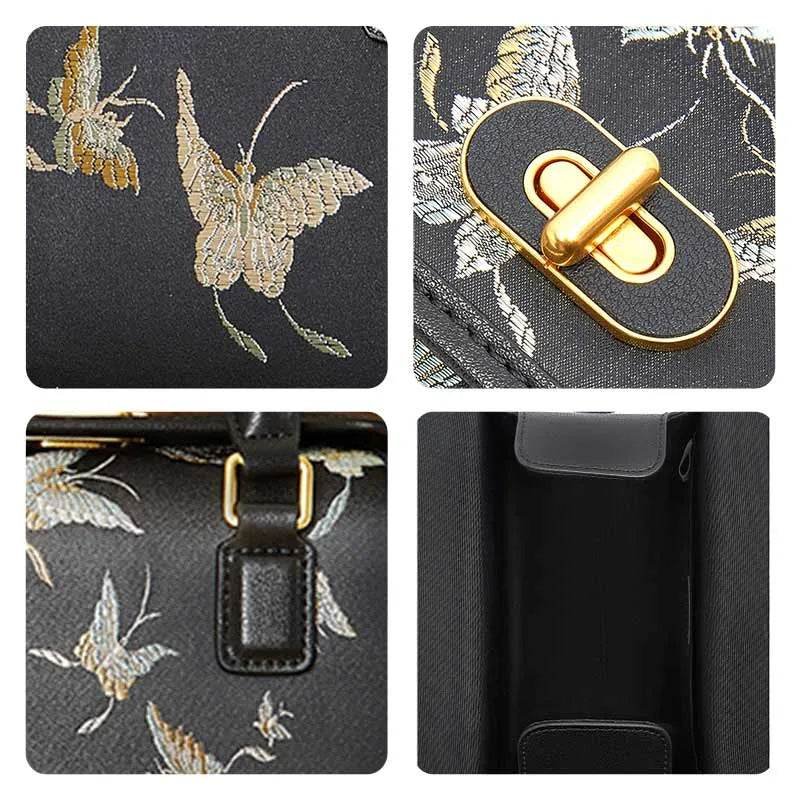 Brocade Boston Black Bag Butterfly Designer Women Handbag