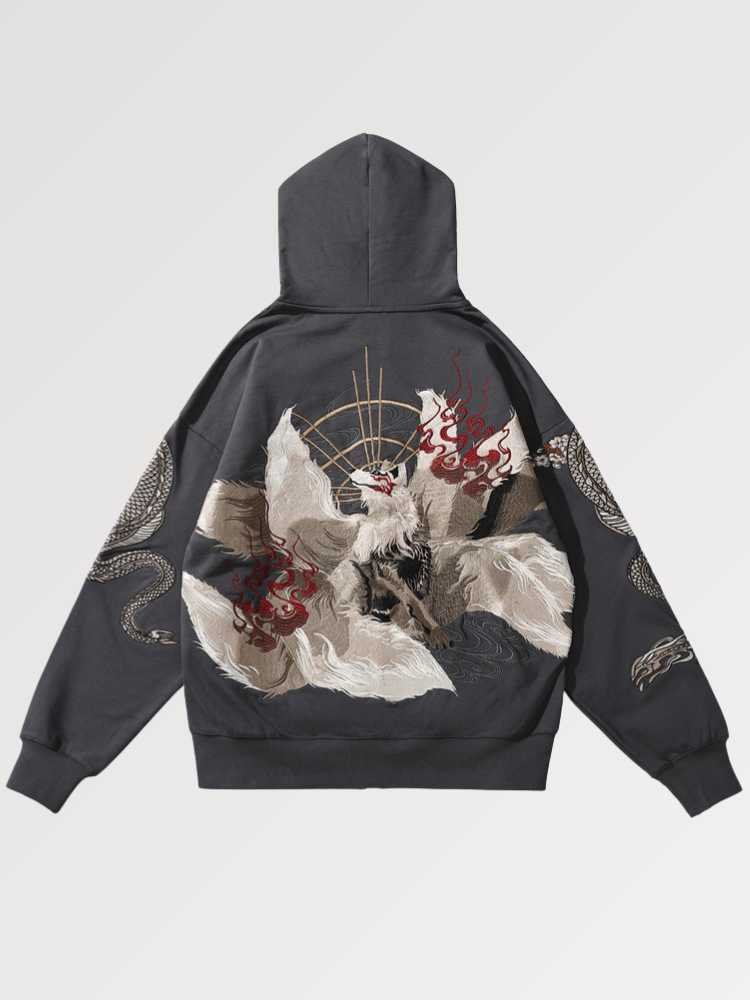 Embroidered Hoodie Japanese Fox ‘Kitsune’