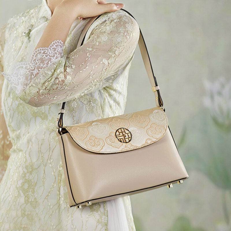 Embroidery Leather Shoulder Bag Auspicious Clouds
